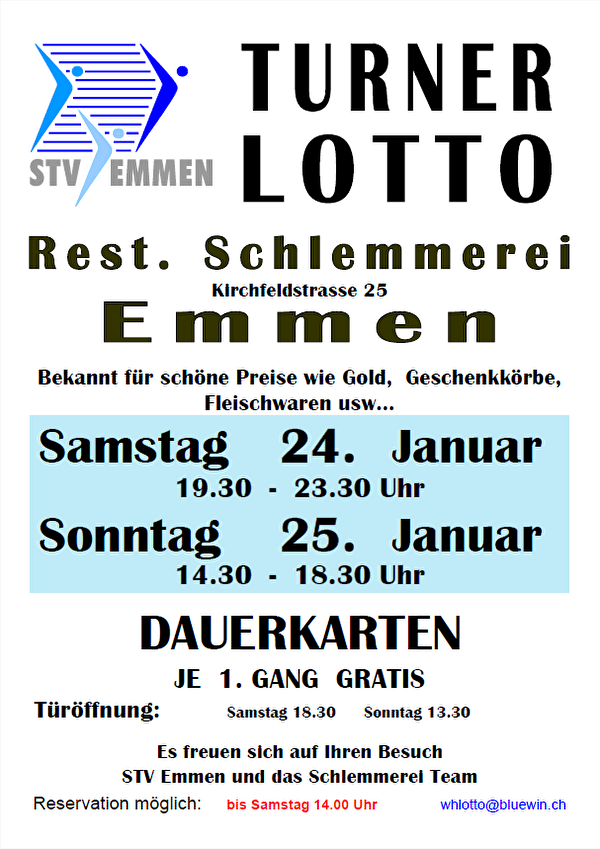 Reservation möglich bis Samstag, 24. Januar 14.00 Uhr per E-Mail an whlotto@bluewin.ch