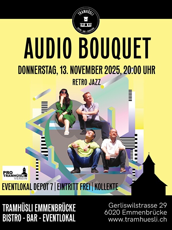 Audiobouquet ist wie ein Blumenstrauss für die Ohren. Wir lassen charmante Stücke aus alten Zeiten in neuer Form aufleben. Neben Klassikern finden sich auch wenig bekannte Perlen aus den 1910er bis 60er Jahren. Einige Stücke sind auf Romanisch gesungen. Neu interpretierter Retro-Jazz im Tramhüsli Depot 7.
